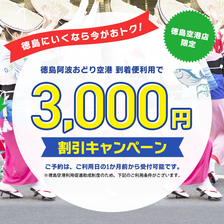 送迎車にて徳島空港店までご案内させて頂き、店舗にて手続き後ご出発となります。